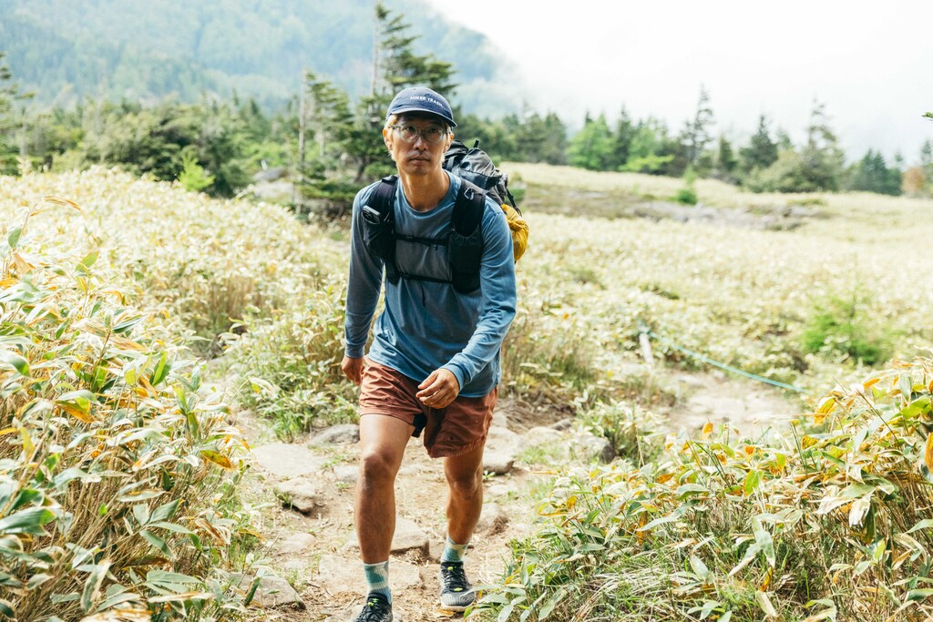 ハイカーの憧れであるPCT(パシフィック・クレスト・トレイル)をはじめ、数々のロングトレイルを踏破してきたロングディスタンスハイカーの河戸良佑さん。これまでもウール製品を愛用してきた。NIKKE AXIO ® を着用して汗冷えを感じにくいところや、匂いにくく洗濯回数を抑えられるところにロングディスタンスハイクとの相性の良さを感じている。