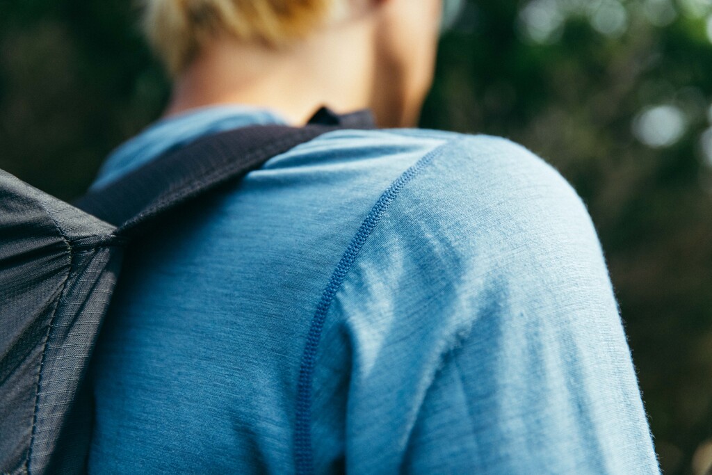 「メリノウールは化繊に比べると、汗で濡れてしまったとしても、体から熱が奪われていく感覚がありません。むしろ保湿した後にちょっとポカポカしてくるような。不思議な素材ですよね」