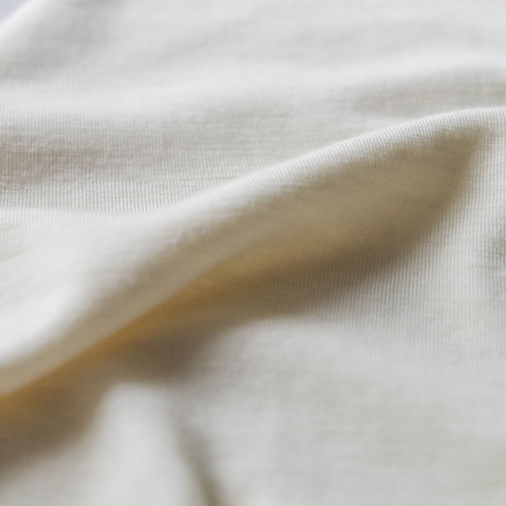 大きな湾曲のクリンプ(捲縮)形状により 豊かな嵩高性と非常にソフトで上質なヌメリ感のある風合いとのファインメリノ100%使用の防縮梳毛ジャージー素材がCROCE®️。蒸れを防ぐウール素材の機能を最大限に活かす設計。夏は汗冷えを防ぎ、冬は暖かい、オールシーズン着用するインナーに最適な定番素材。